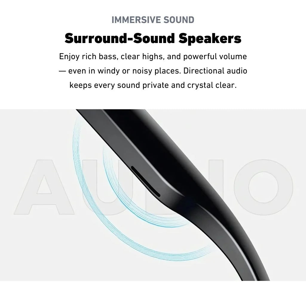 Audio from AI Smart Glasses is directional and designed to be heard primarily by you. In quiet environments or at higher volumes, others nearby may hear faint sound, but it’s generally not disruptive.